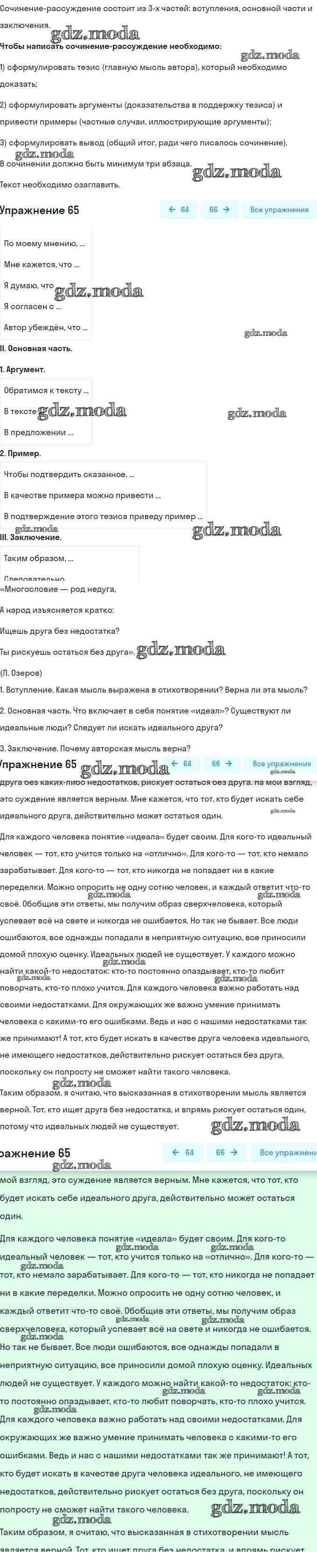 ГДЗ решение к заданию № 65 Русский язык 7 класс рабочая тетрадь Ларионова Л.Г. Дрофа 2018 ФГОС бесплатно на гдз.мода!