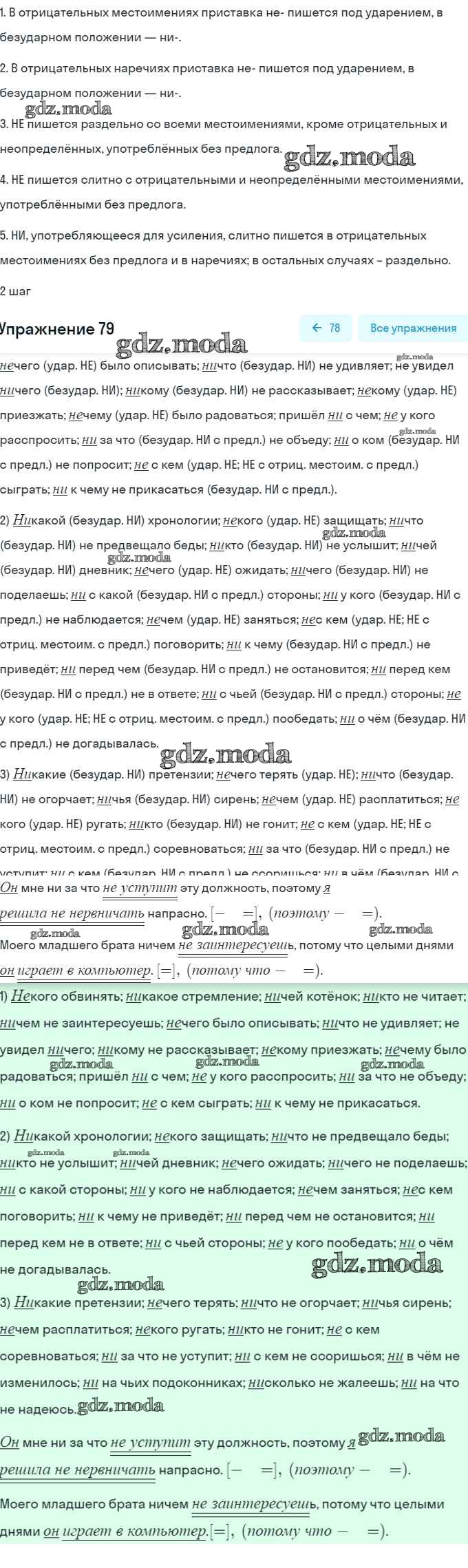 ОТВЕТ на задание № 79 Рабочая тетрадь по Русскому языку 7 класс Ларионова УМК