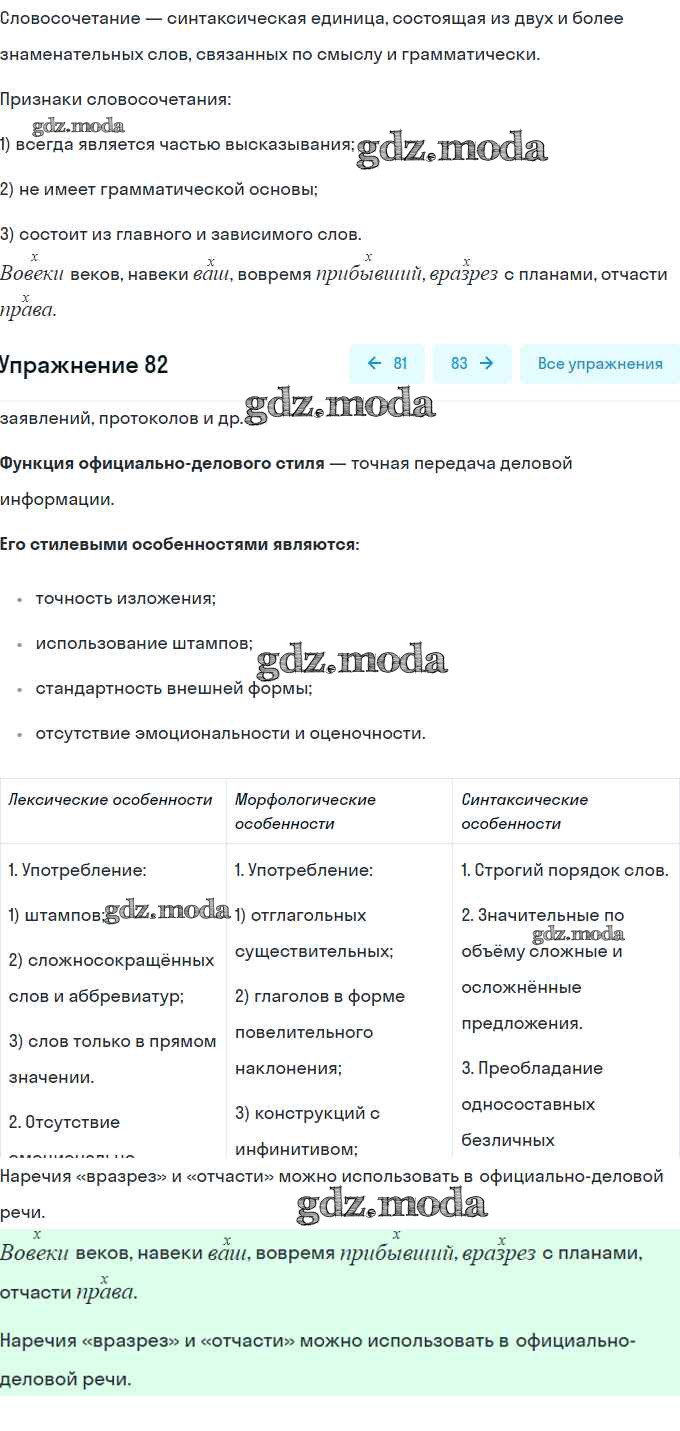 ГДЗ решение к заданию № 82 Русский язык 7 класс рабочая тетрадь Ларионова Л.Г. Дрофа 2018 ФГОС бесплатно на гдз.мода!