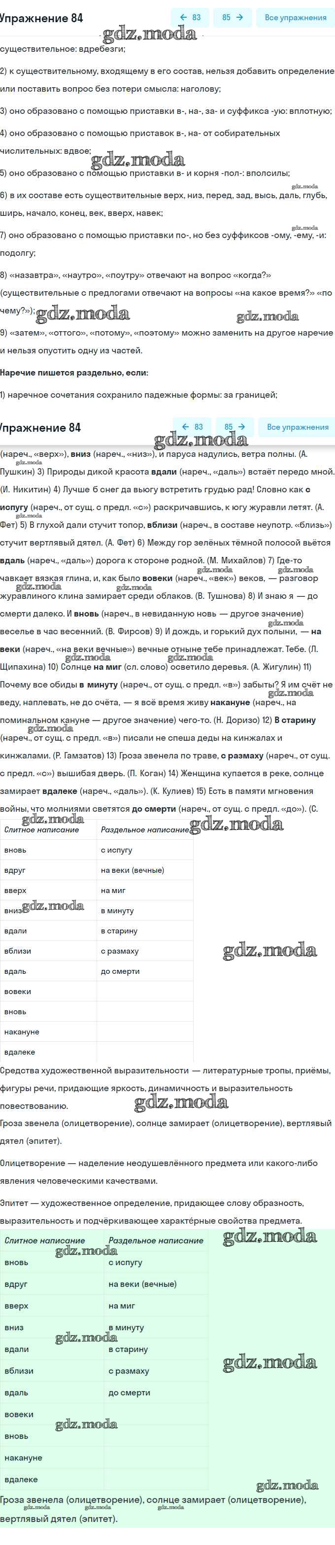 ГДЗ решение к заданию № 84 Русский язык 7 класс рабочая тетрадь Ларионова Л.Г. Дрофа 2018 ФГОС бесплатно на гдз.мода!