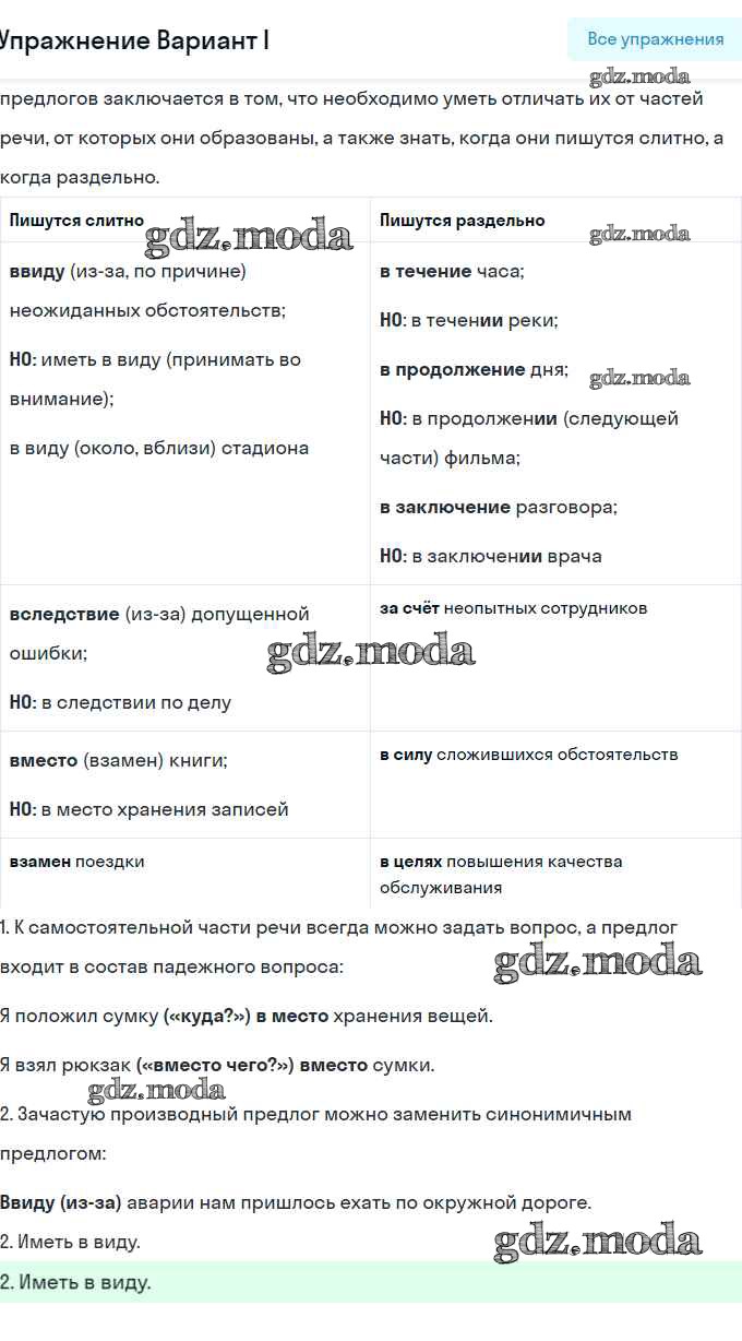 ОТВЕТ на задание № Вариант 1 Рабочая тетрадь по Русскому языку 7 класс Ларионова УМК
