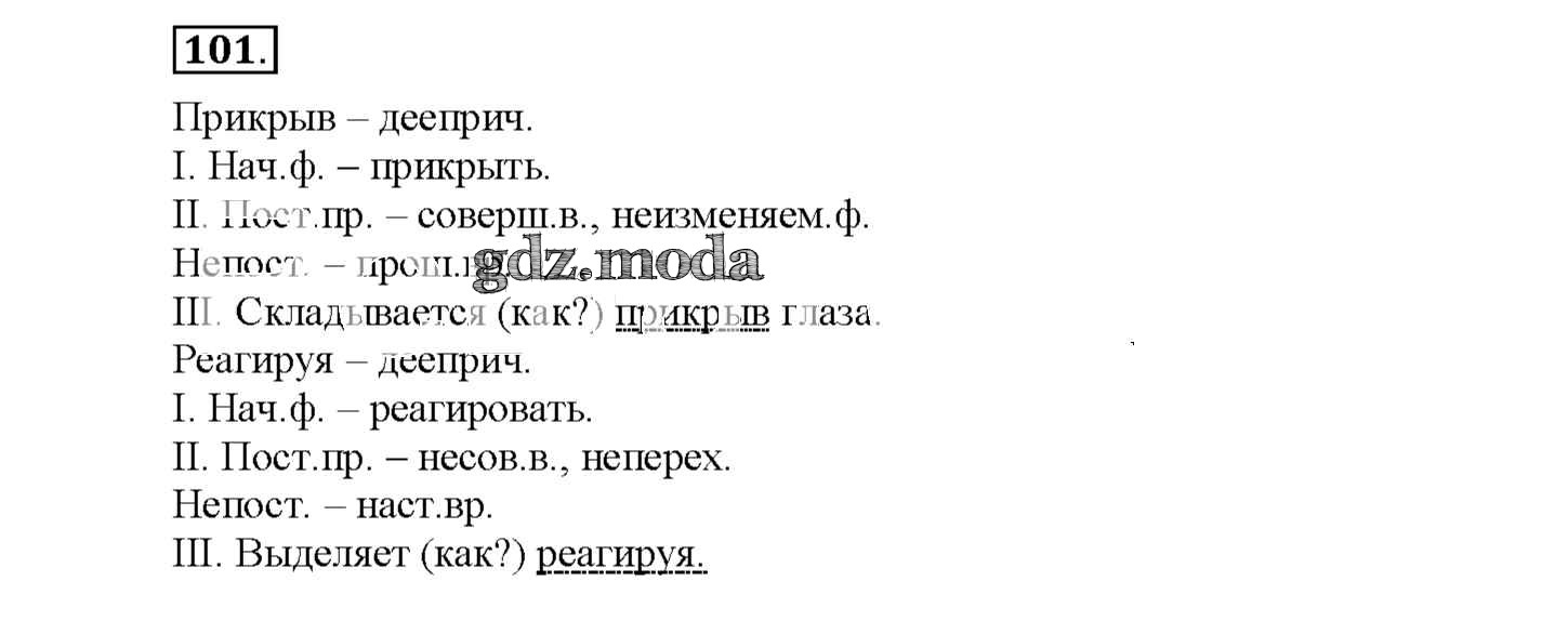 ОТВЕТ на задание № 101 Рабочая тетрадь по Русскому языку 7 класс Янченко