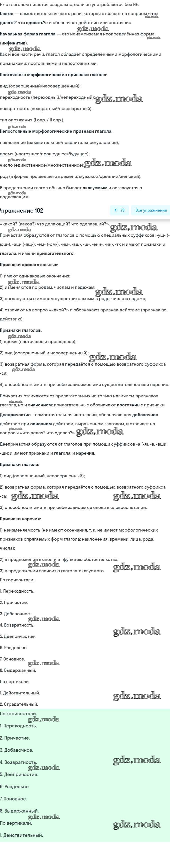 ОТВЕТ на задание № 102 Рабочая тетрадь по Русскому языку 7 класс Янченко