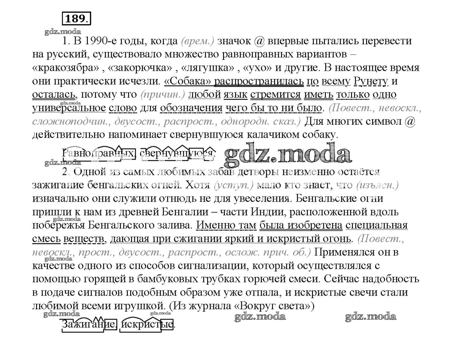 ОТВЕТ на задание № 189 Рабочая тетрадь по Русскому языку 7 класс Янченко