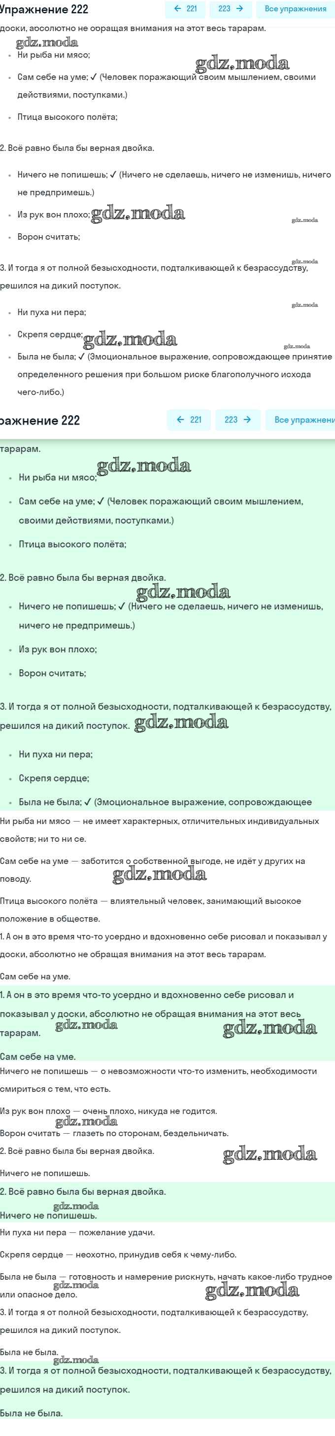 ОТВЕТ на задание № 222 Рабочая тетрадь по Русскому языку 7 класс Янченко