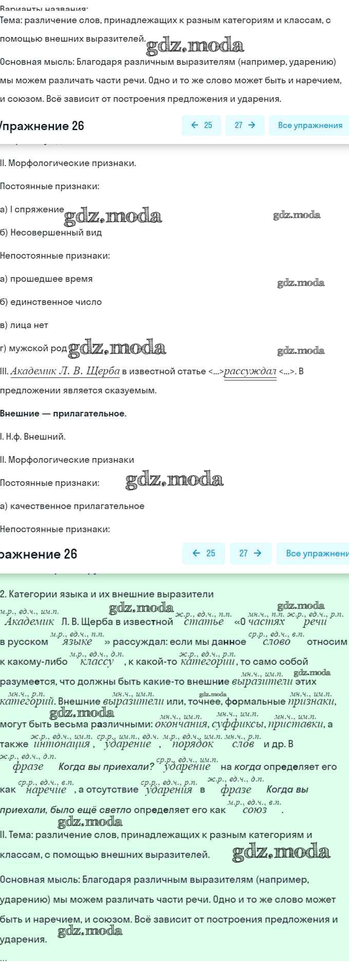 ОТВЕТ на задание № 26 Рабочая тетрадь по Русскому языку 7 класс Янченко