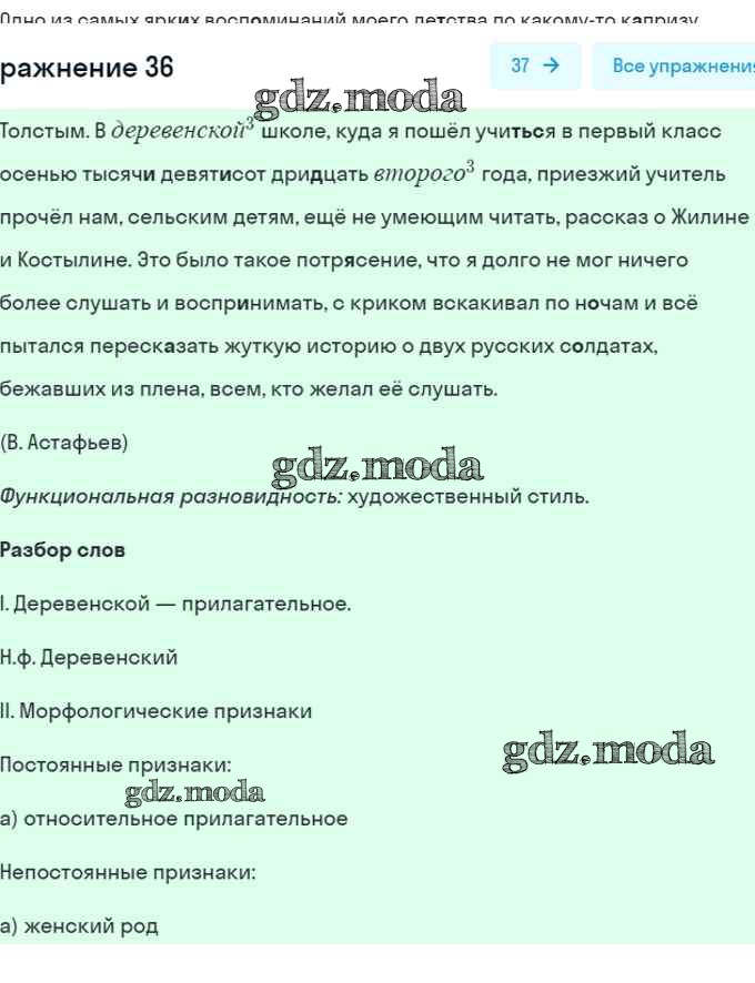 ОТВЕТ на задание № 36 Рабочая тетрадь по Русскому языку 7 класс Янченко