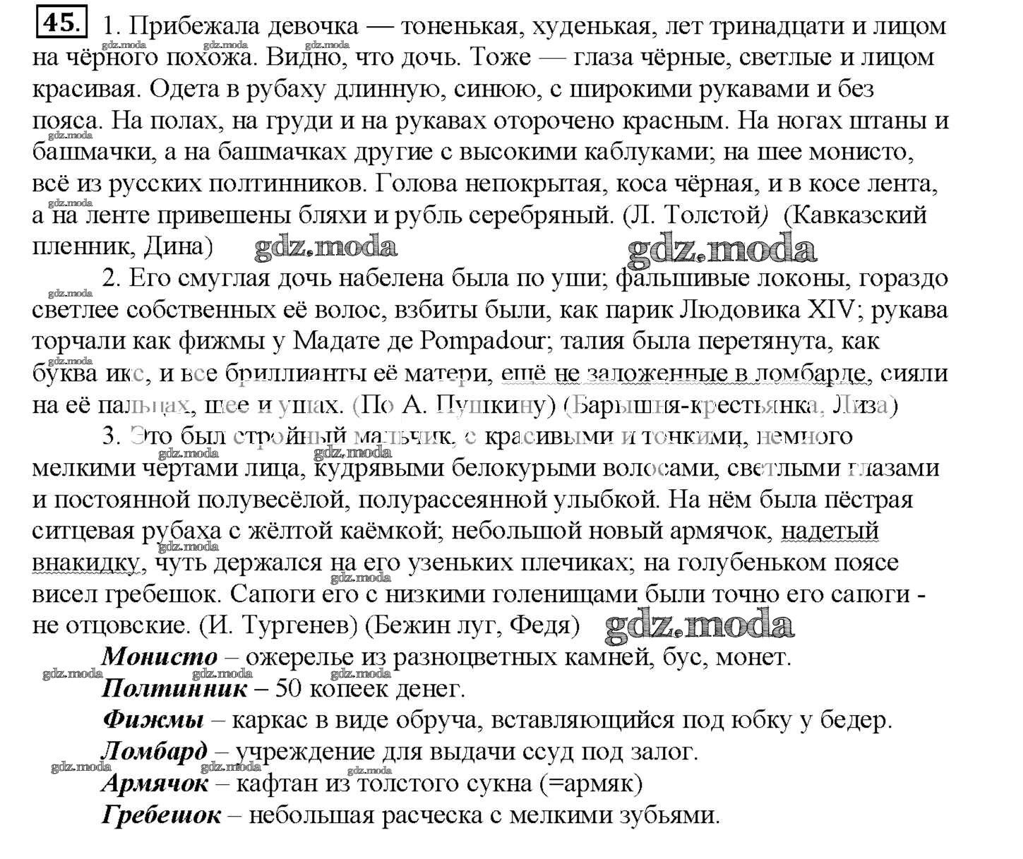 ОТВЕТ на задание № 45 Рабочая тетрадь по Русскому языку 7 класс Янченко