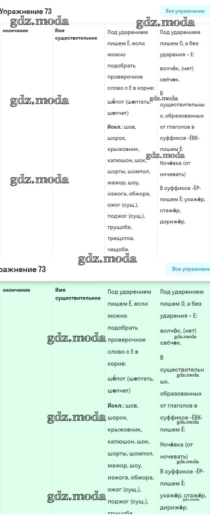 ОТВЕТ на задание № 73 Рабочая тетрадь по Русскому языку 7 класс Янченко