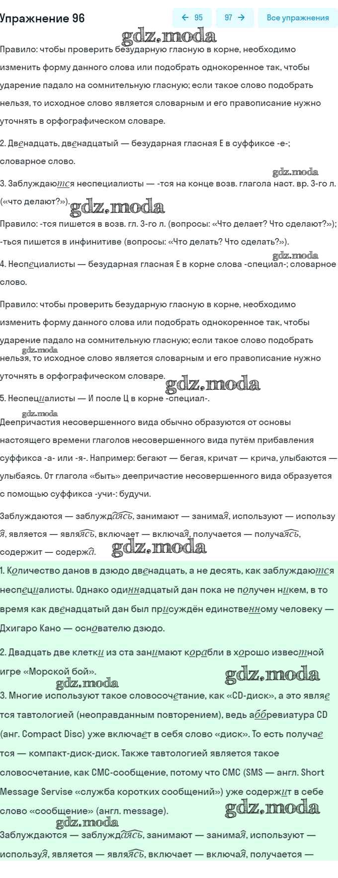 ОТВЕТ на задание № 96 Рабочая тетрадь по Русскому языку 7 класс Янченко