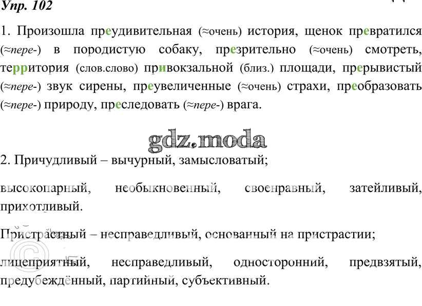 ОТВЕТ на задание № 102 Учебник по Русскому языку 7 класс Разумовская УМК
