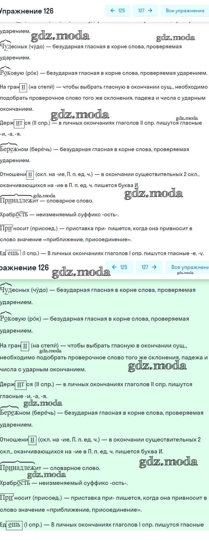 ОТВЕТ на задание № 126 Учебник по Русскому языку 7 класс Разумовская УМК