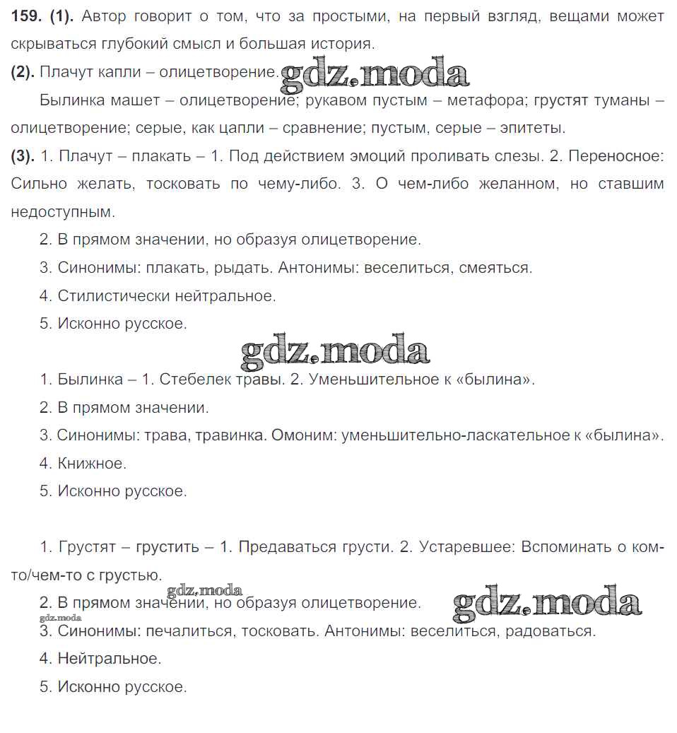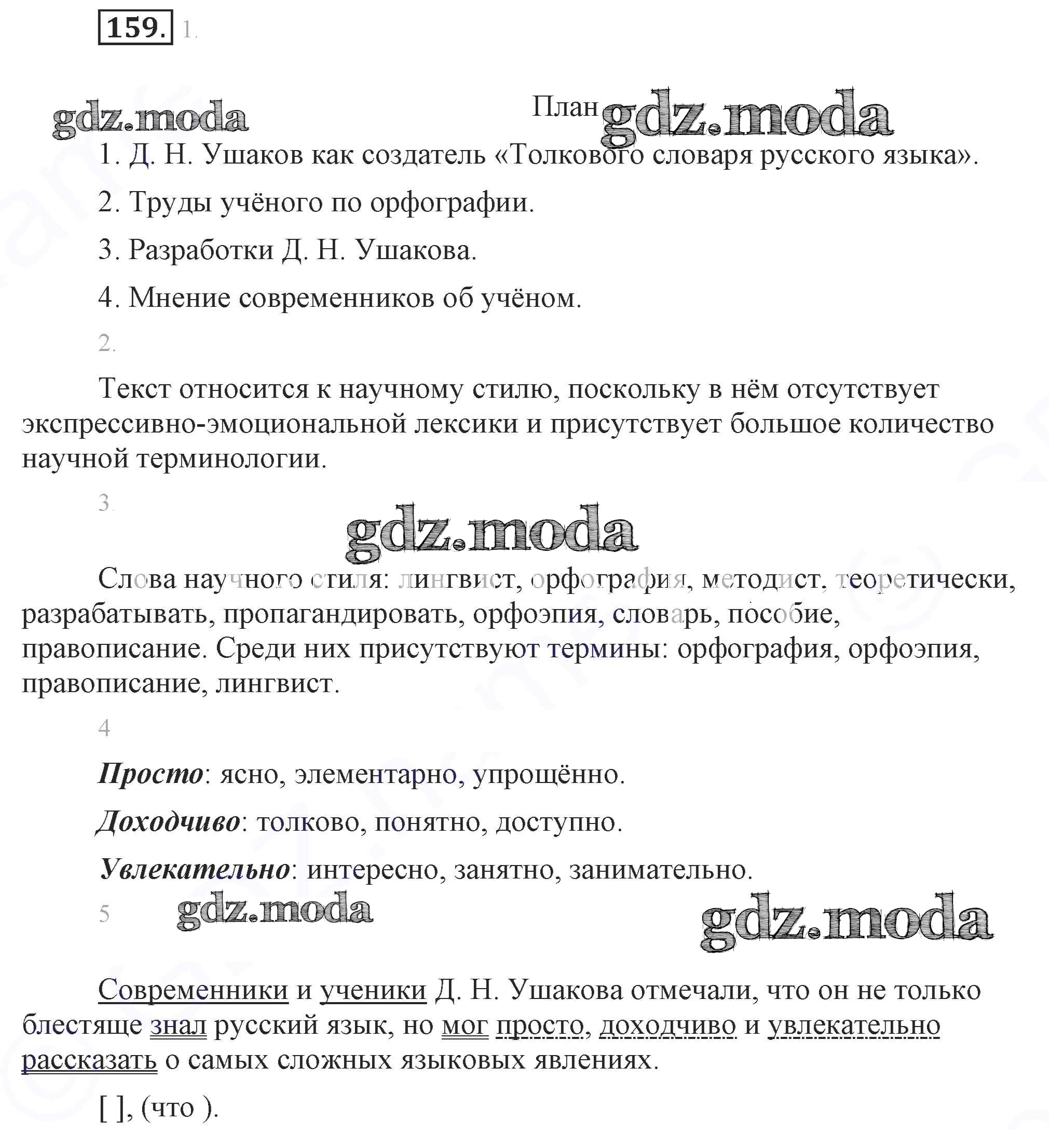 ОТВЕТ на задание № 159 Учебник по Русскому языку 7 класс Разумовская УМК