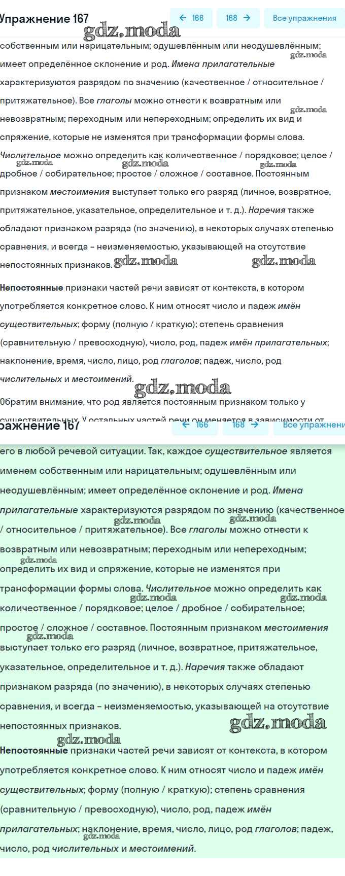 ОТВЕТ на задание № 167 Учебник по Русскому языку 7 класс Разумовская УМК