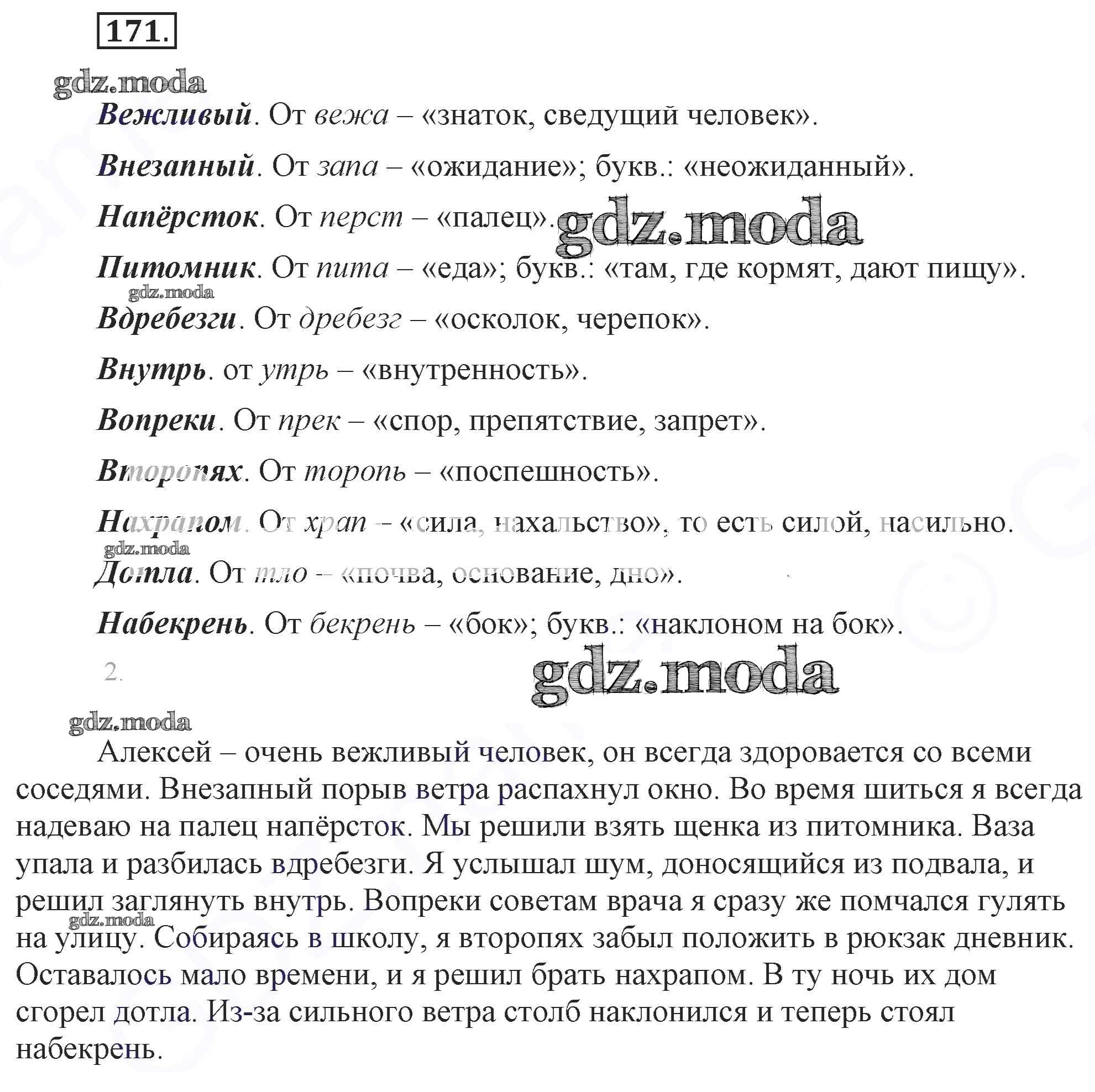 ОТВЕТ на задание № 171 Учебник по Русскому языку 7 класс Разумовская УМК