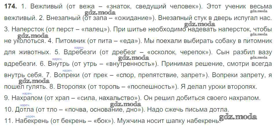 ОТВЕТ на задание № 174 Учебник по Русскому языку 7 класс Разумовская УМК