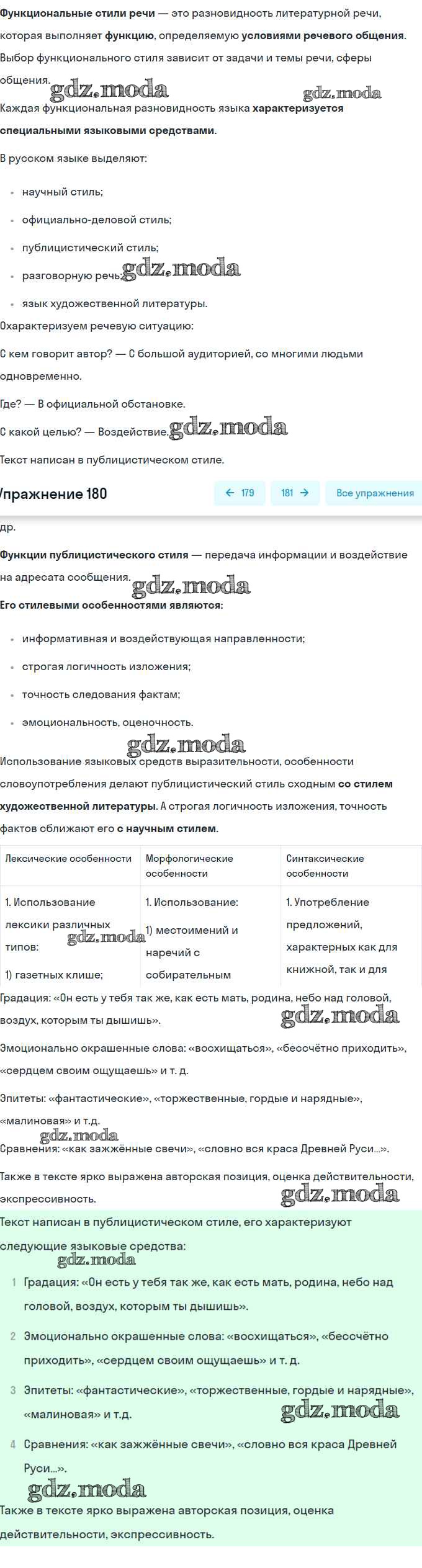 ОТВЕТ на задание № 180 Учебник по Русскому языку 7 класс Разумовская УМК