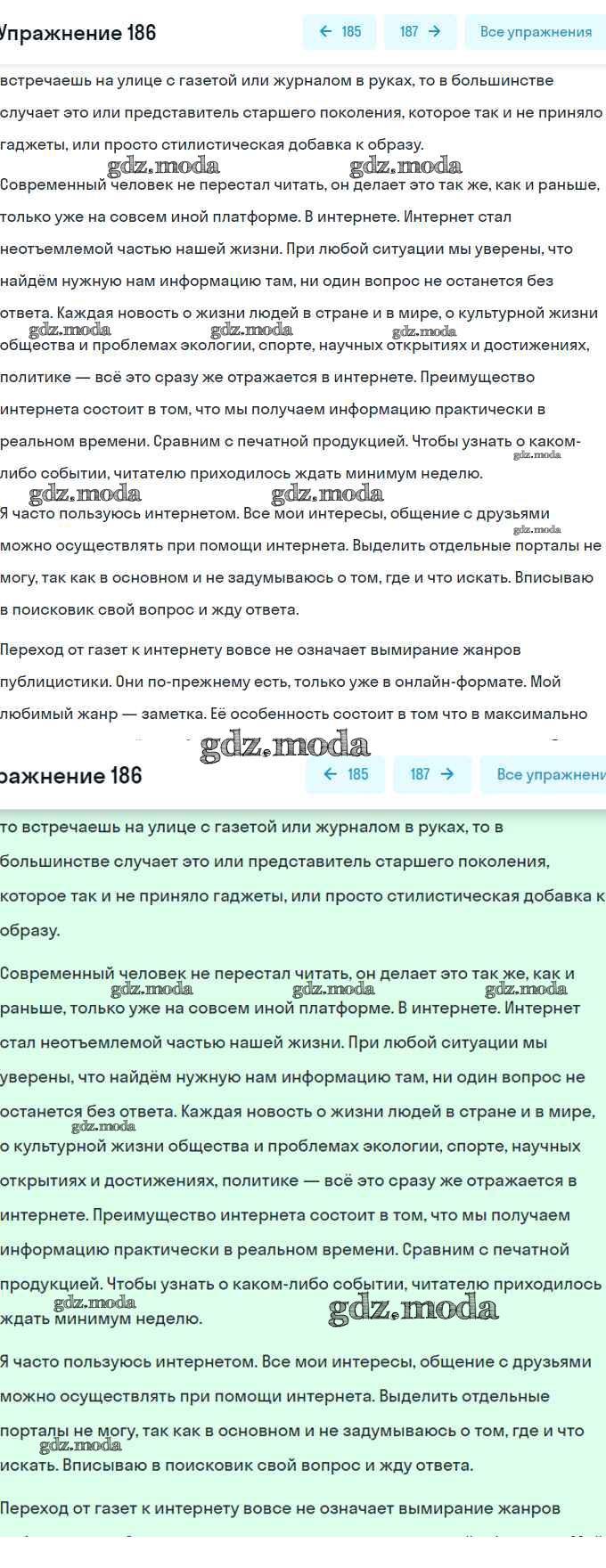 ОТВЕТ на задание № 186 Учебник по Русскому языку 7 класс Разумовская УМК