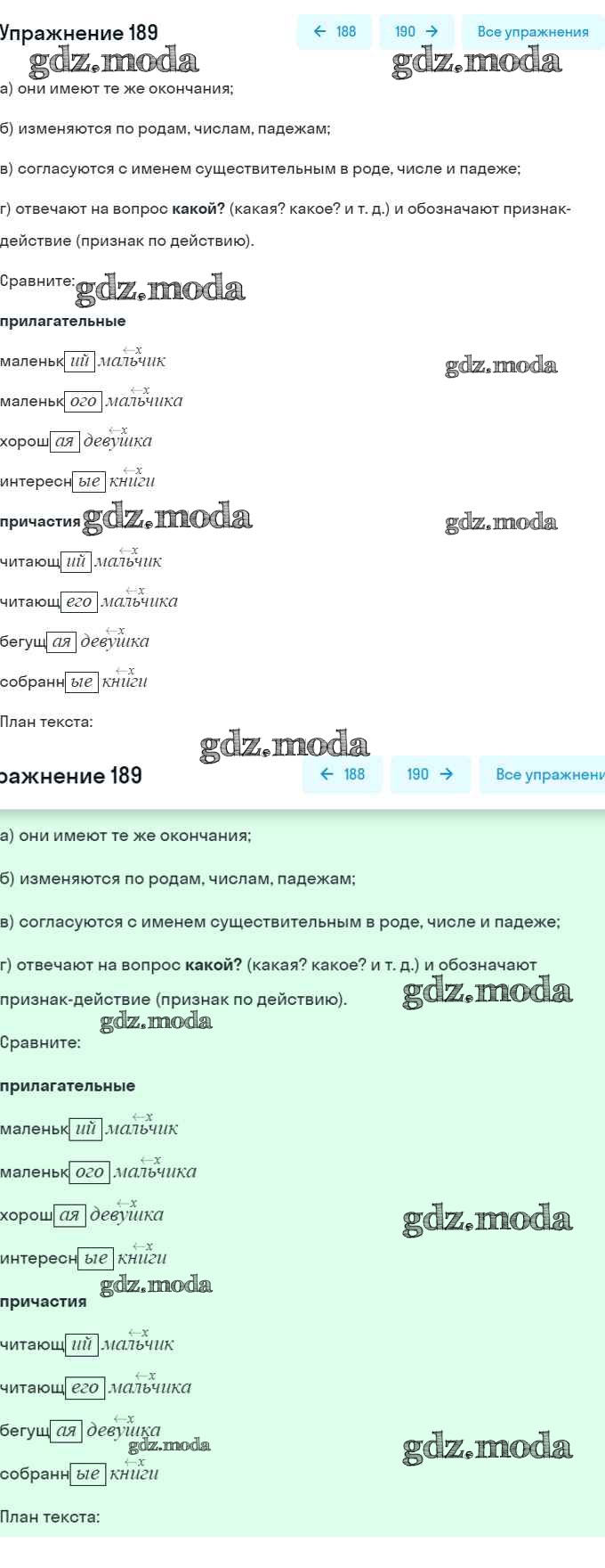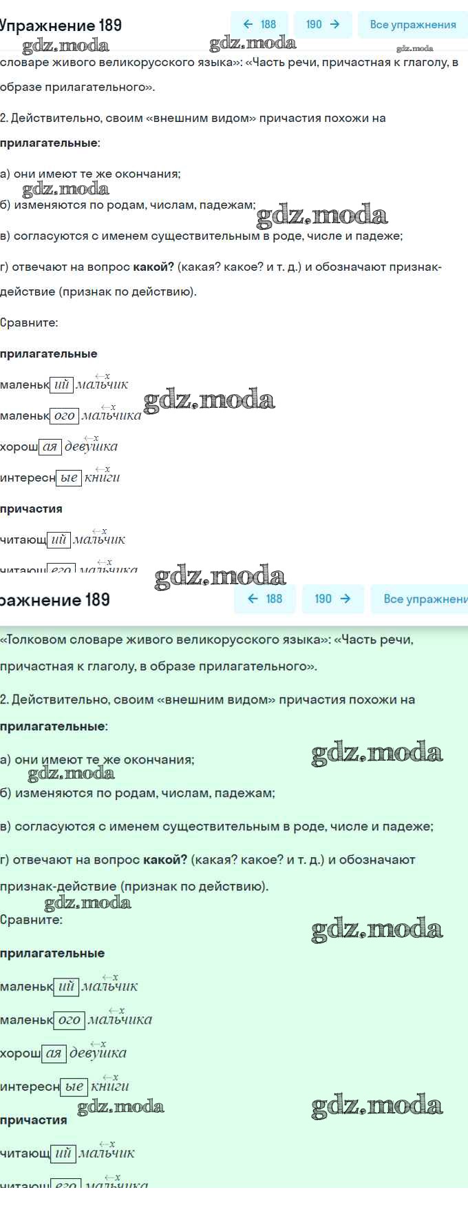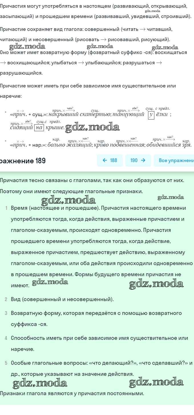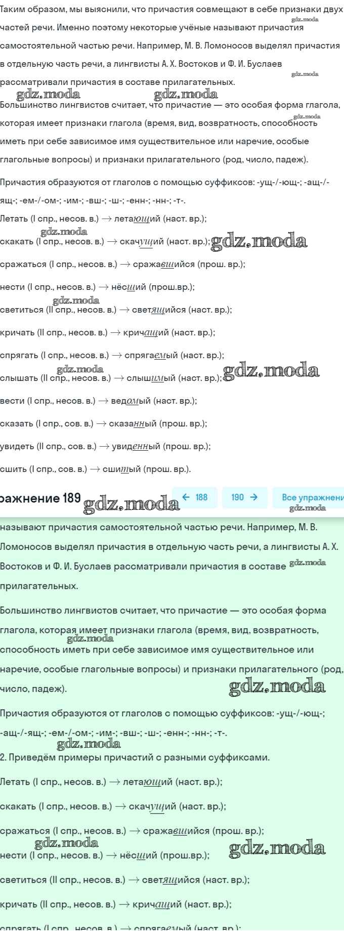 ОТВЕТ на задание № 189 Учебник по Русскому языку 7 класс Разумовская УМК