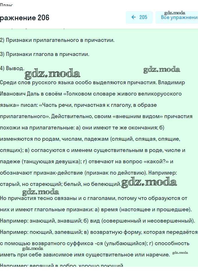 ОТВЕТ на задание № 206 Учебник по Русскому языку 7 класс Разумовская УМК