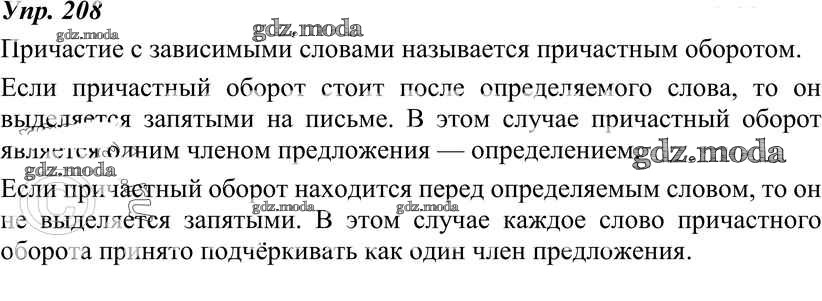 ОТВЕТ на задание № 208 Учебник по Русскому языку 7 класс Разумовская УМК