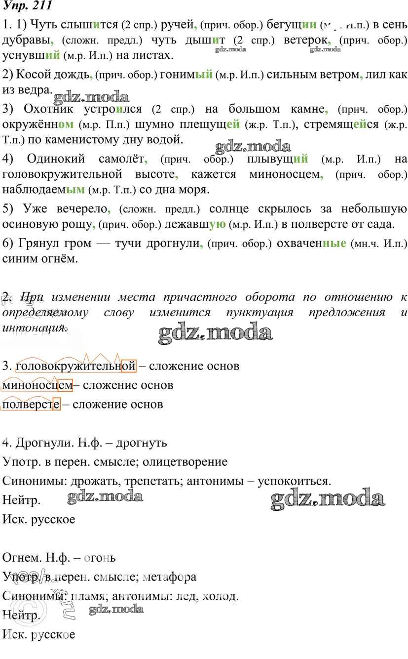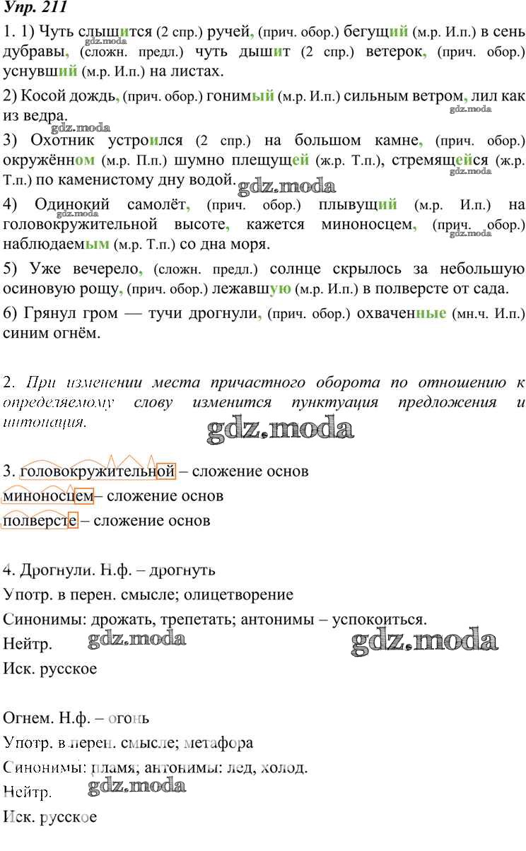 ОТВЕТ на задание № 211 Учебник по Русскому языку 7 класс Разумовская УМК