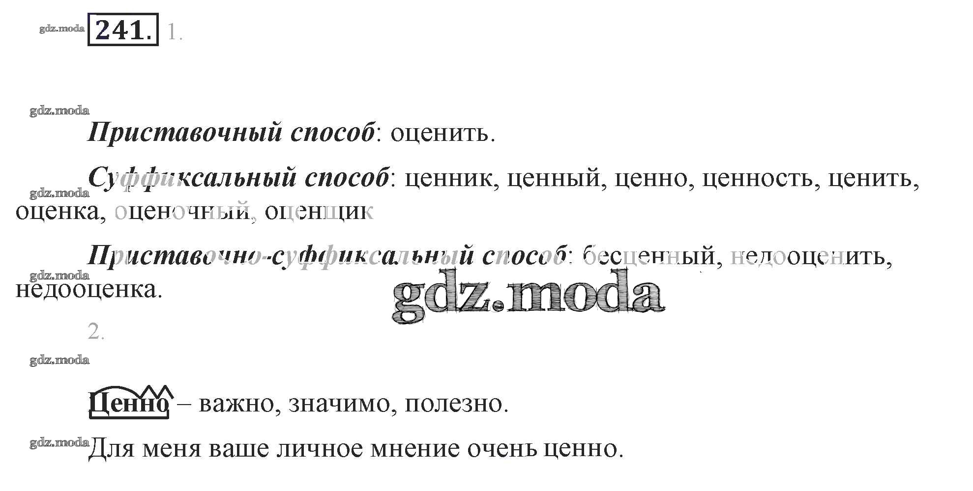 ОТВЕТ на задание № 241 Учебник по Русскому языку 7 класс Разумовская УМК