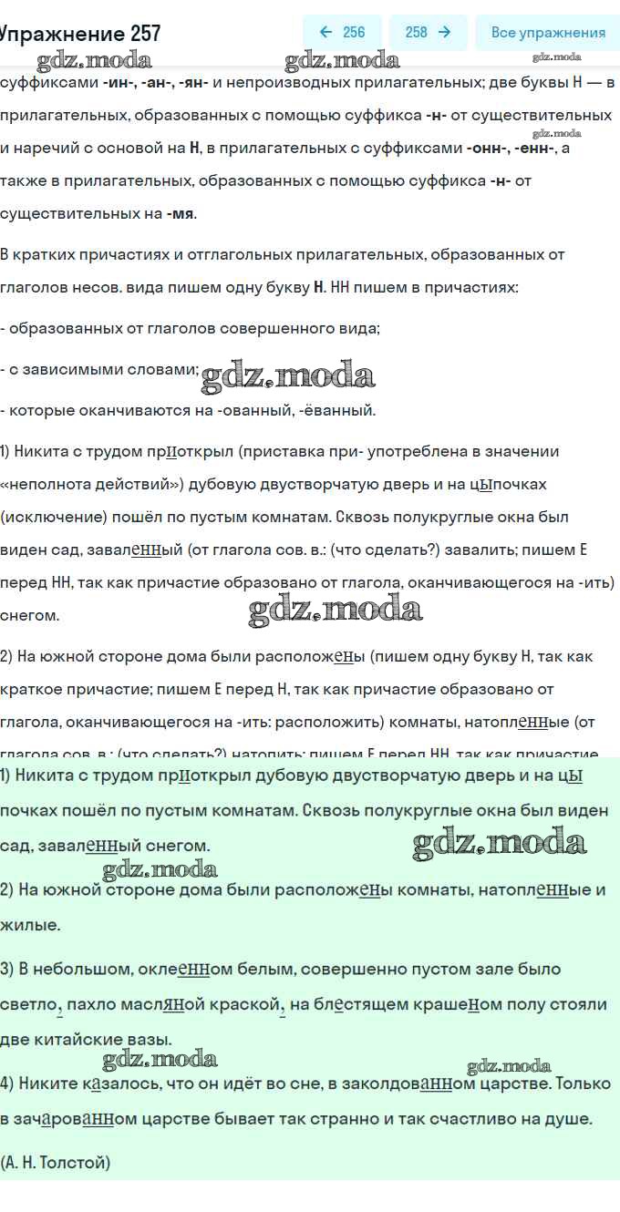 ОТВЕТ на задание № 257 Учебник по Русскому языку 7 класс Разумовская УМК