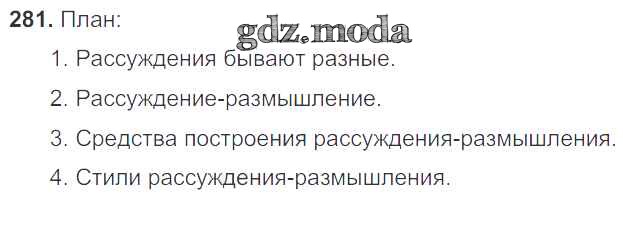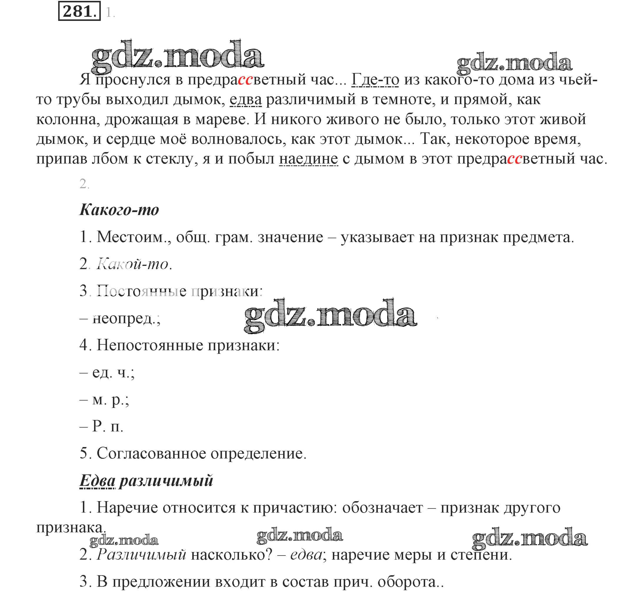 ОТВЕТ на задание № 281 Учебник по Русскому языку 7 класс Разумовская УМК