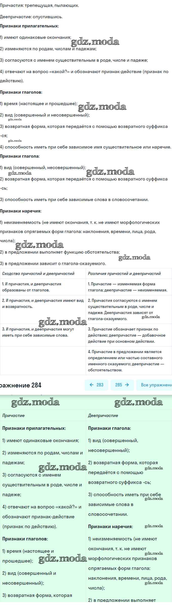 ОТВЕТ на задание № 284 Учебник по Русскому языку 7 класс Разумовская УМК