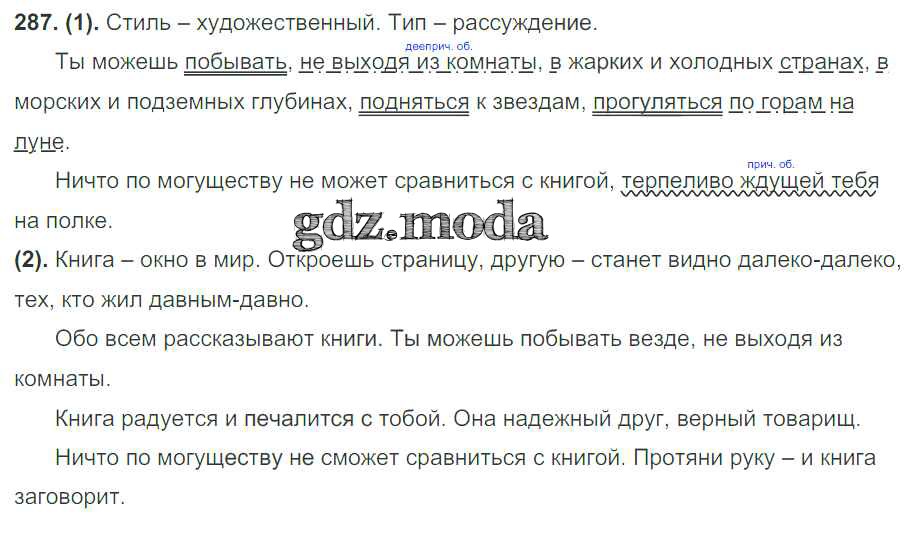 ОТВЕТ на задание № 287 Учебник по Русскому языку 7 класс Разумовская УМК