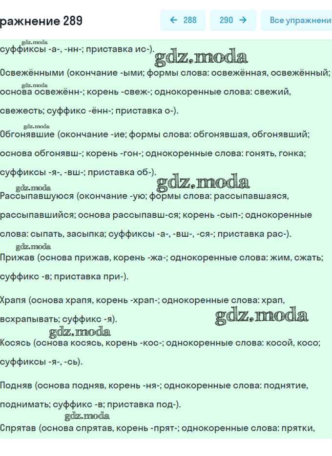 ОТВЕТ на задание № 289 Учебник по Русскому языку 7 класс Разумовская УМК