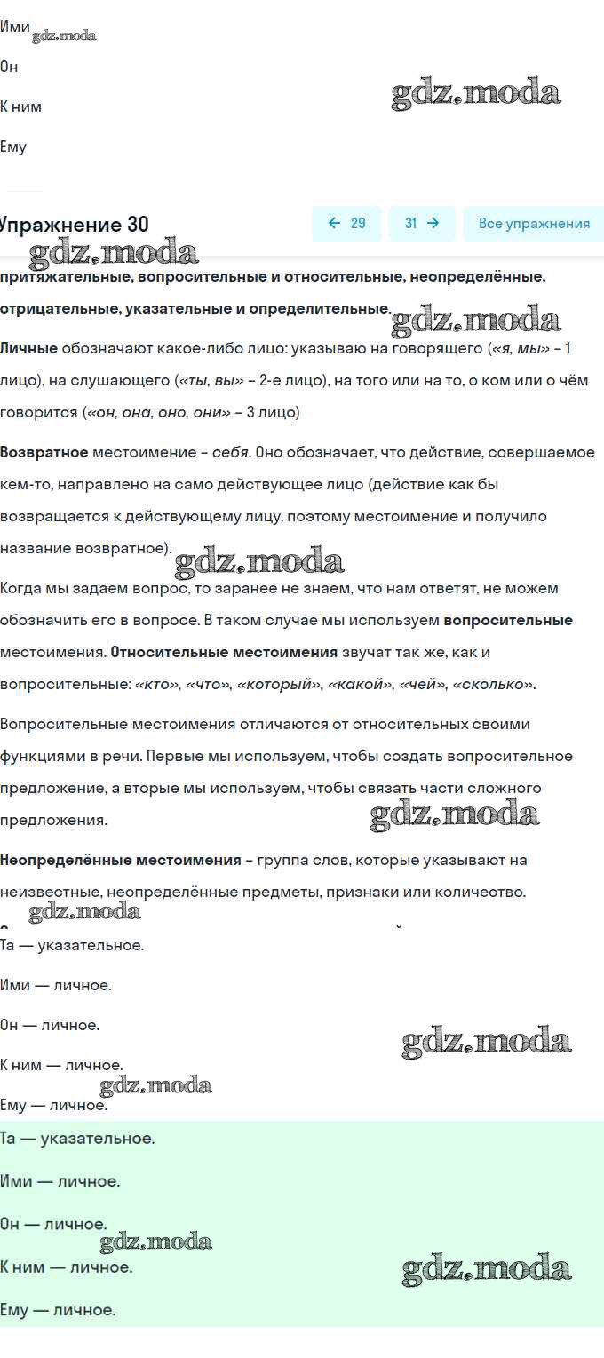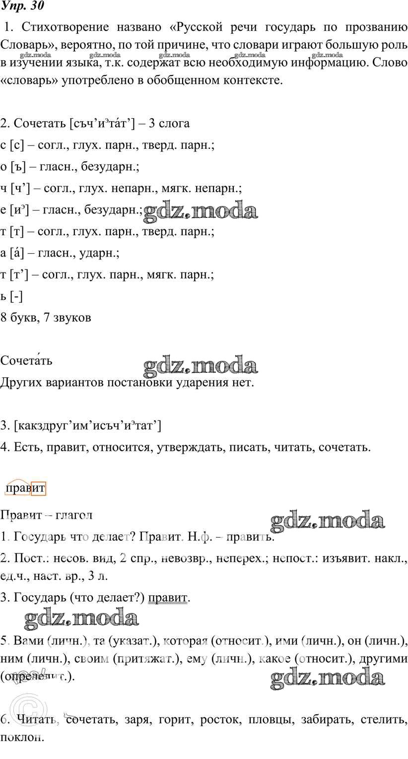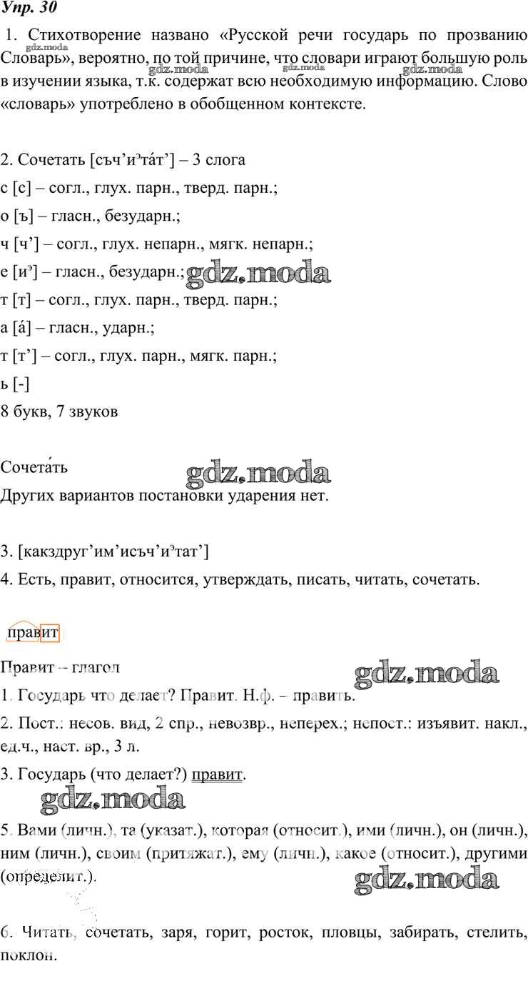 ОТВЕТ на задание № 30 Учебник по Русскому языку 7 класс Разумовская УМК