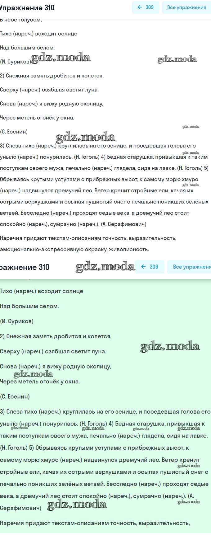 ОТВЕТ на задание № 310 Учебник по Русскому языку 7 класс Разумовская УМК