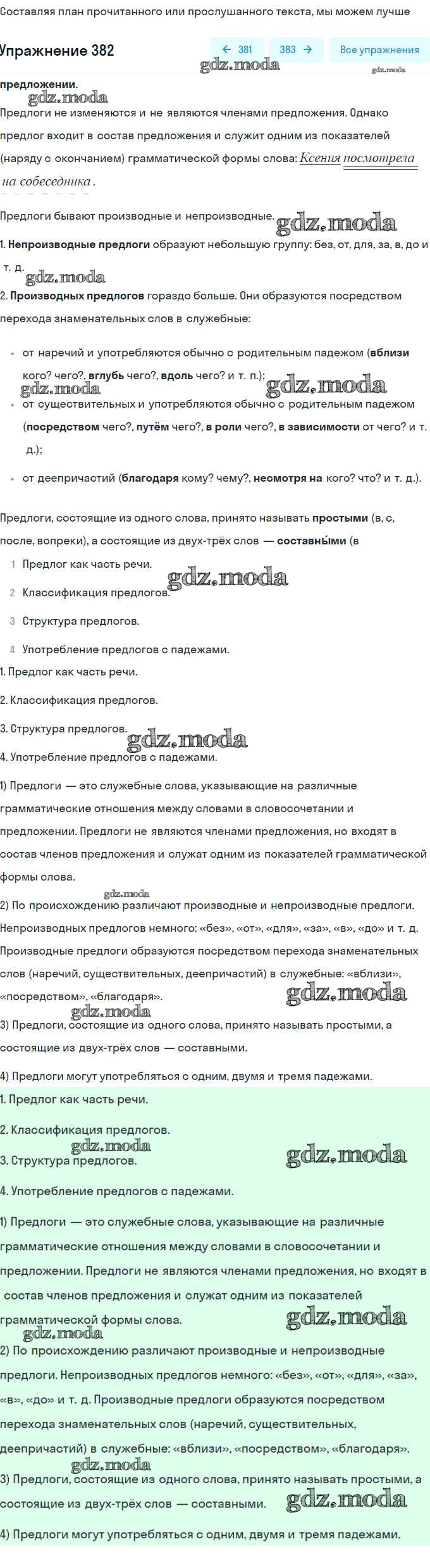 ОТВЕТ на задание № 382 Учебник по Русскому языку 7 класс Разумовская