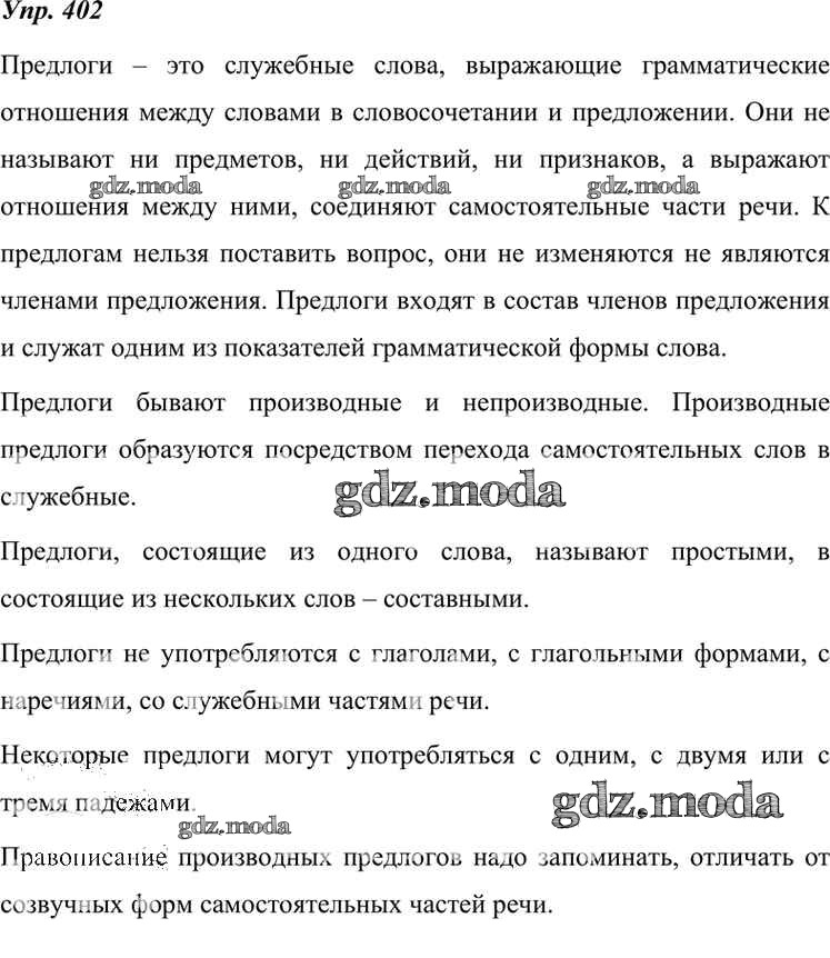 ОТВЕТ на задание № 402 Учебник по Русскому языку 7 класс Разумовская УМК