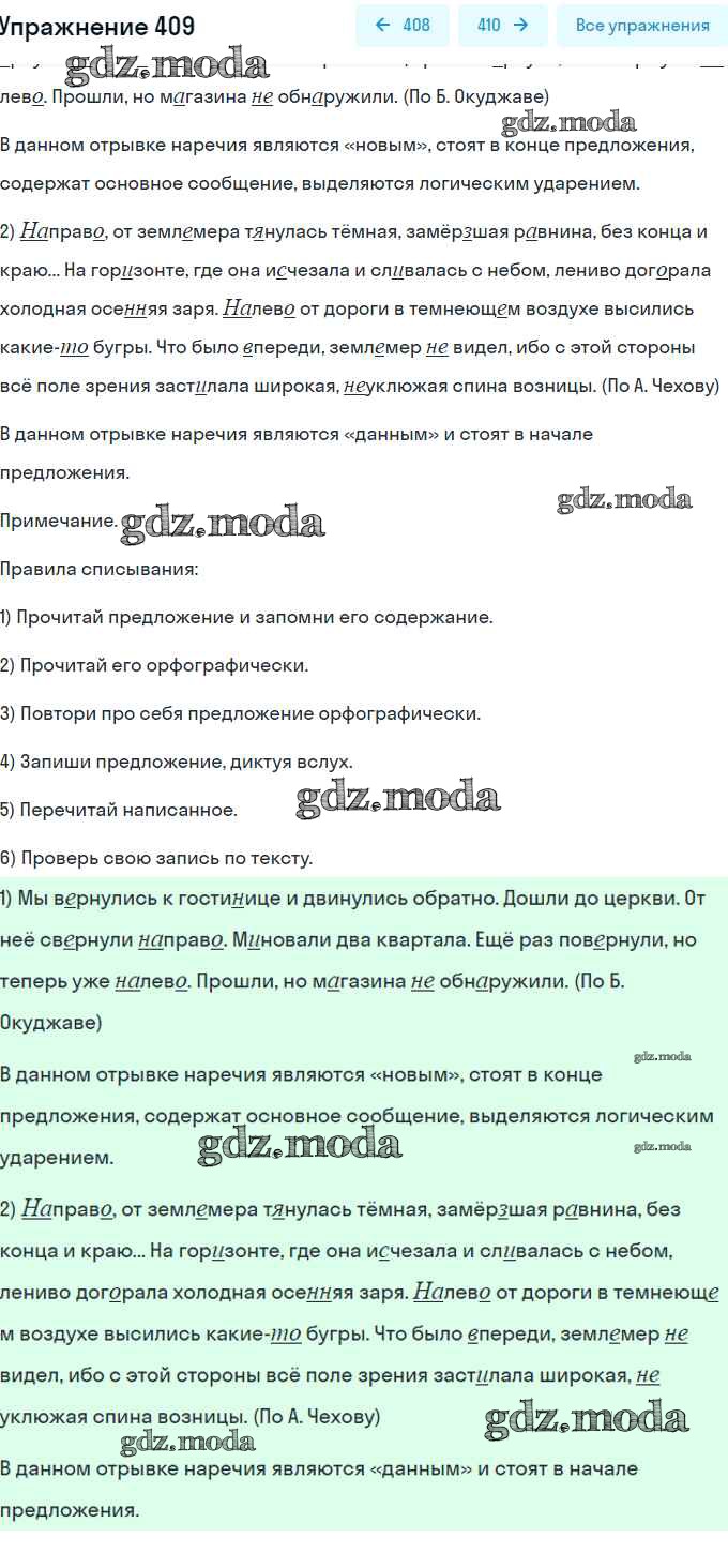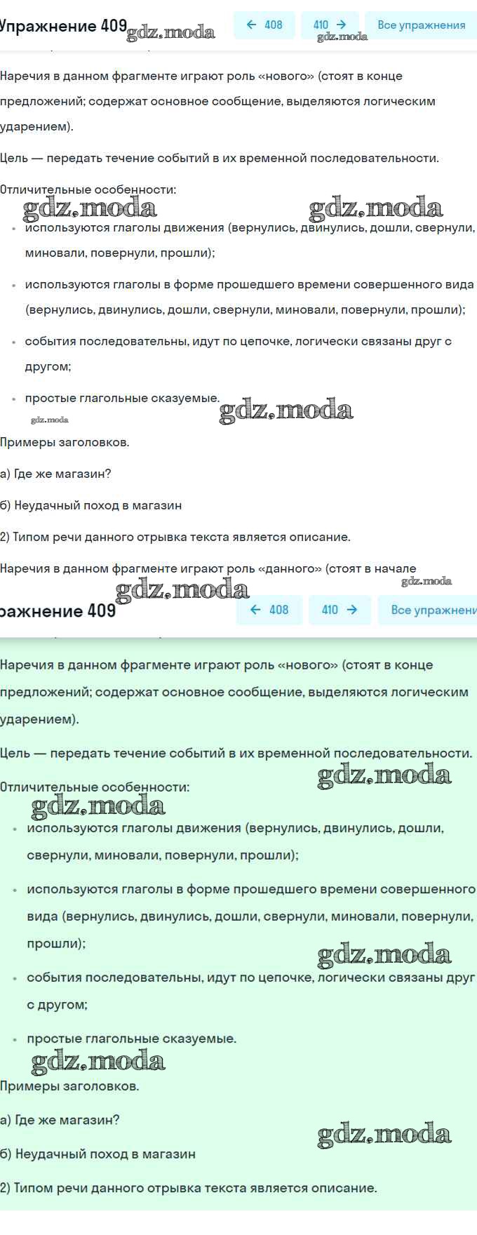 ОТВЕТ на задание № 409 Учебник по Русскому языку 7 класс Разумовская УМК