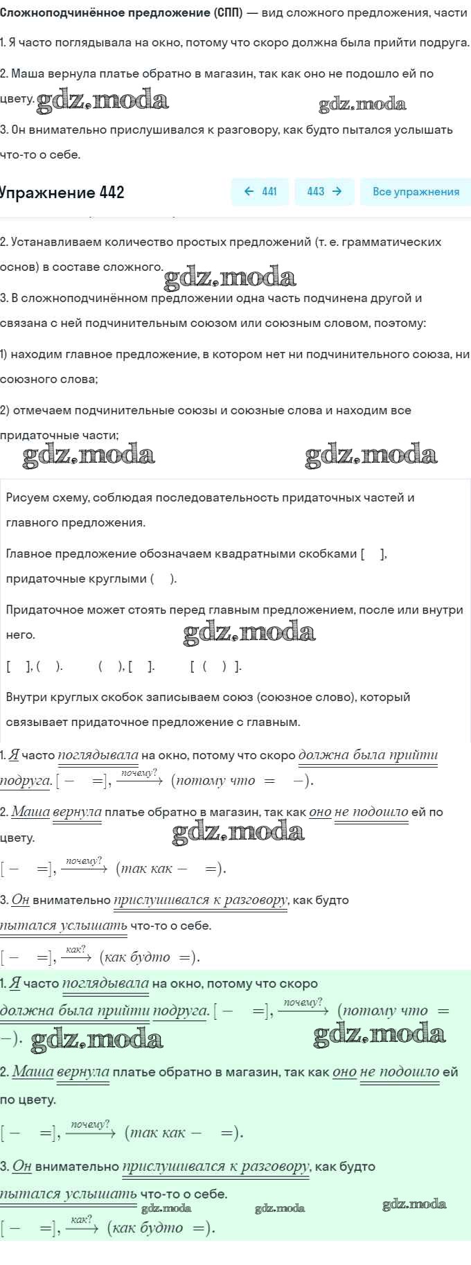 ОТВЕТ на задание № 442 Учебник по Русскому языку 7 класс Разумовская УМК