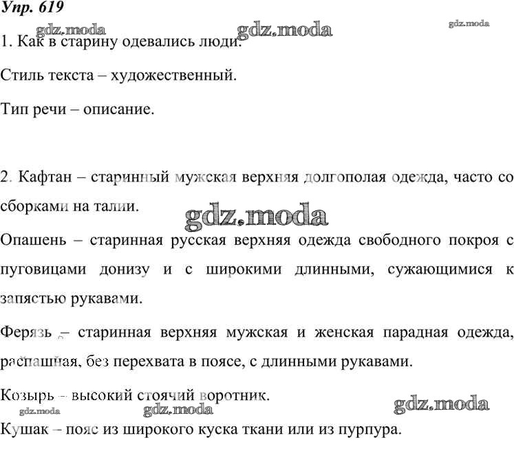 ОТВЕТ на задание № 619 Учебник по Русскому языку 7 класс Разумовская УМК