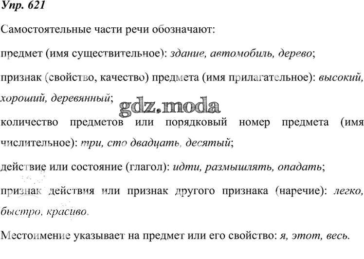 ОТВЕТ на задание № 621 Учебник по Русскому языку 7 класс Разумовская УМК