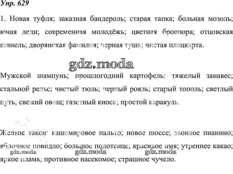 ОТВЕТ на задание № 629 Учебник по Русскому языку 7 класс Разумовская УМК