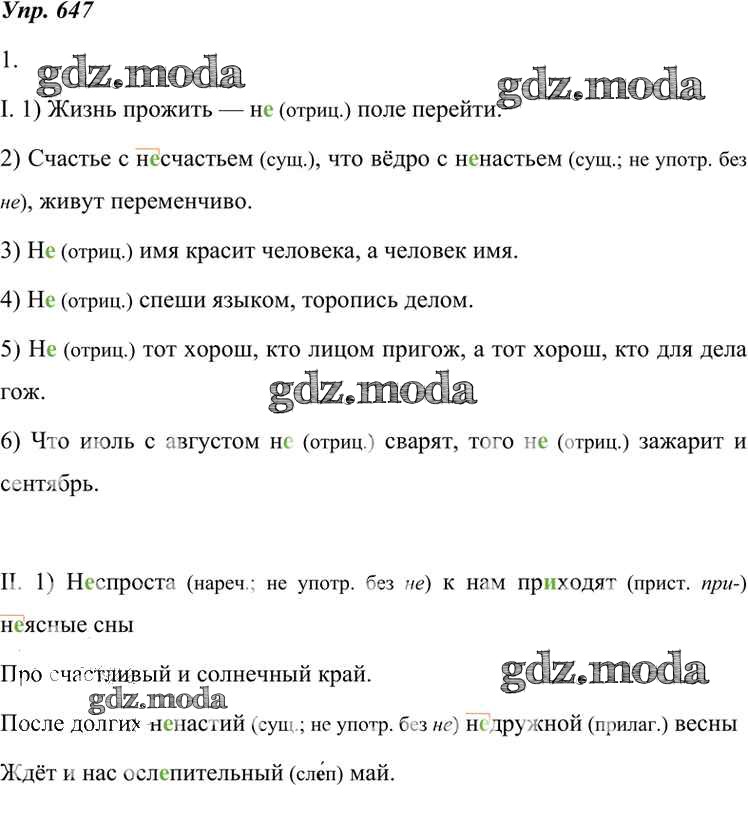 ОТВЕТ на задание № 647 Учебник по Русскому языку 7 класс Разумовская УМК