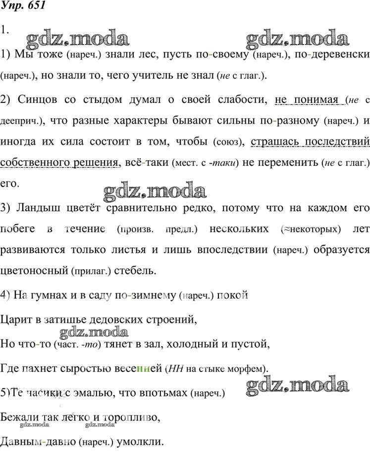 ОТВЕТ на задание № 651 Учебник по Русскому языку 7 класс Разумовская УМК