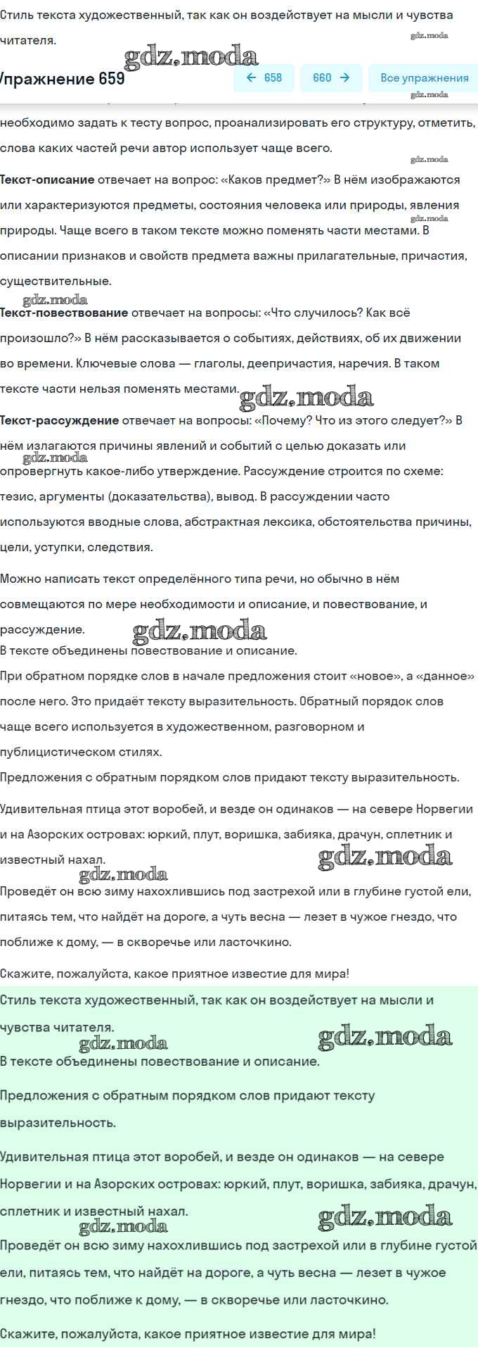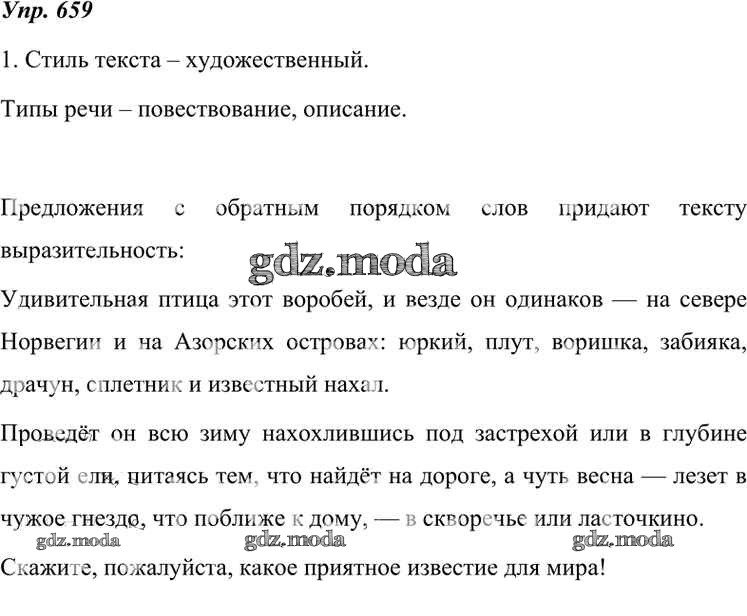 ОТВЕТ на задание № 659 Учебник по Русскому языку 7 класс Разумовская УМК