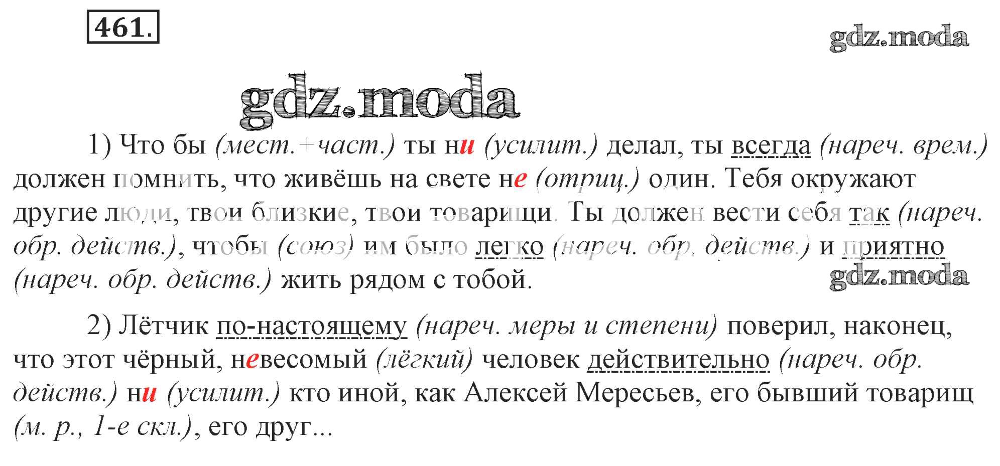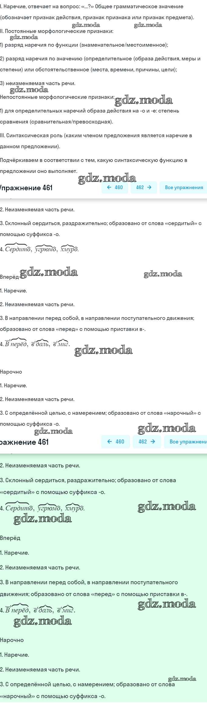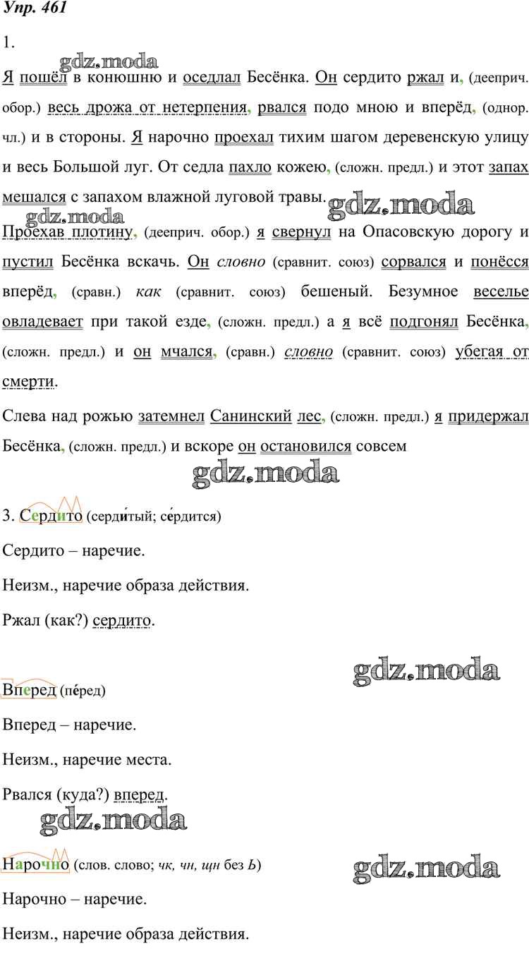 ОТВЕТ на задание № 461 Учебник по Русскому языку 7 класс Разумовская УМК