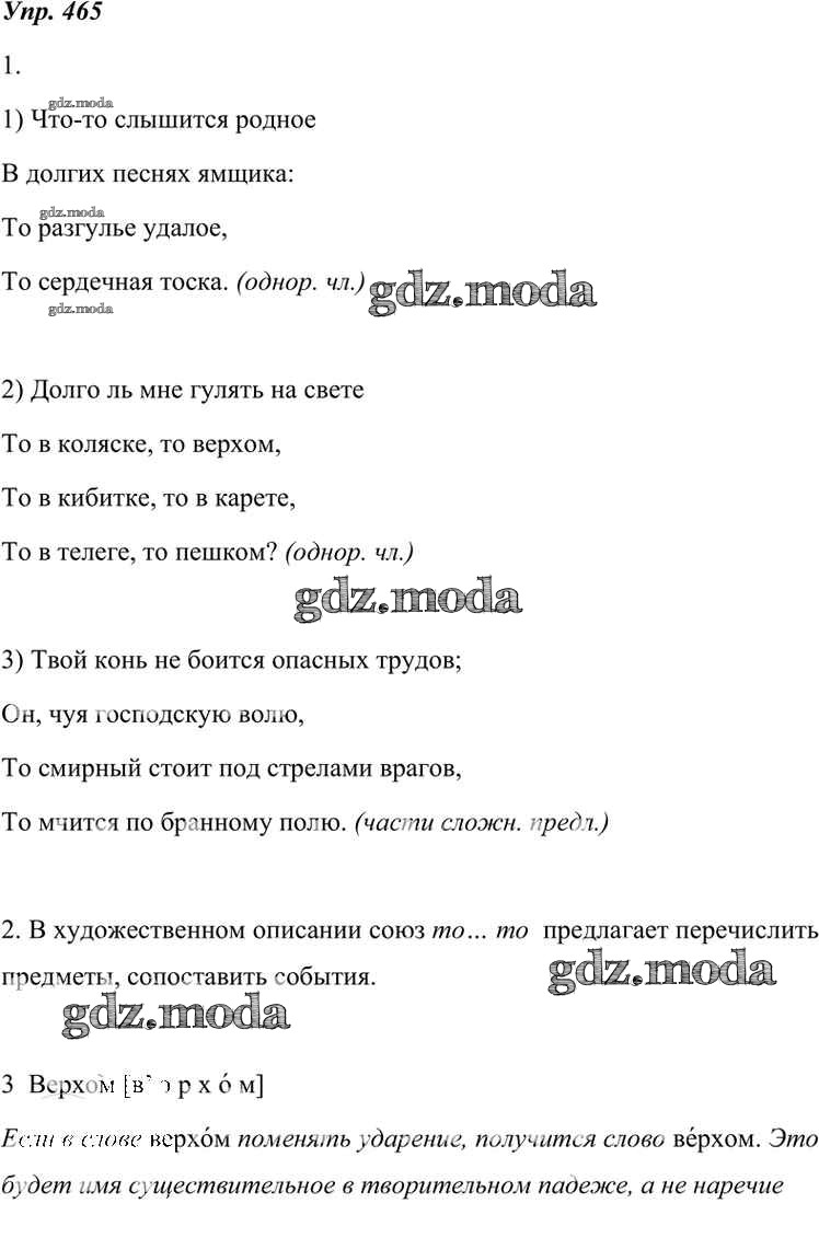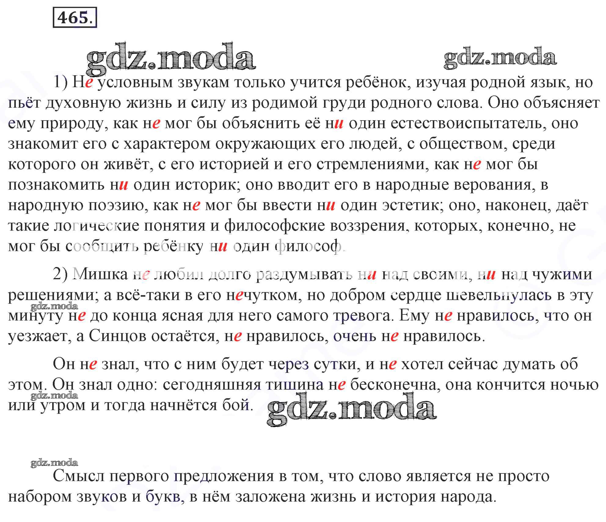 ОТВЕТ на задание № 465 Учебник по Русскому языку 7 класс Разумовская УМК