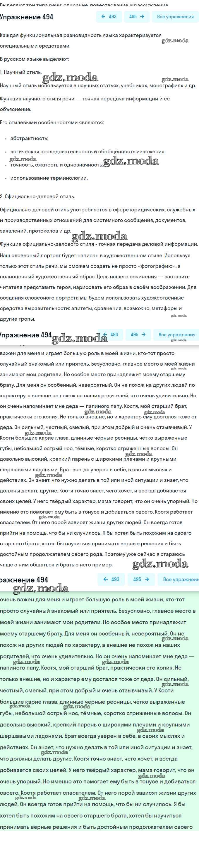 ОТВЕТ на задание № 494 Учебник по Русскому языку 7 класс Разумовская УМК