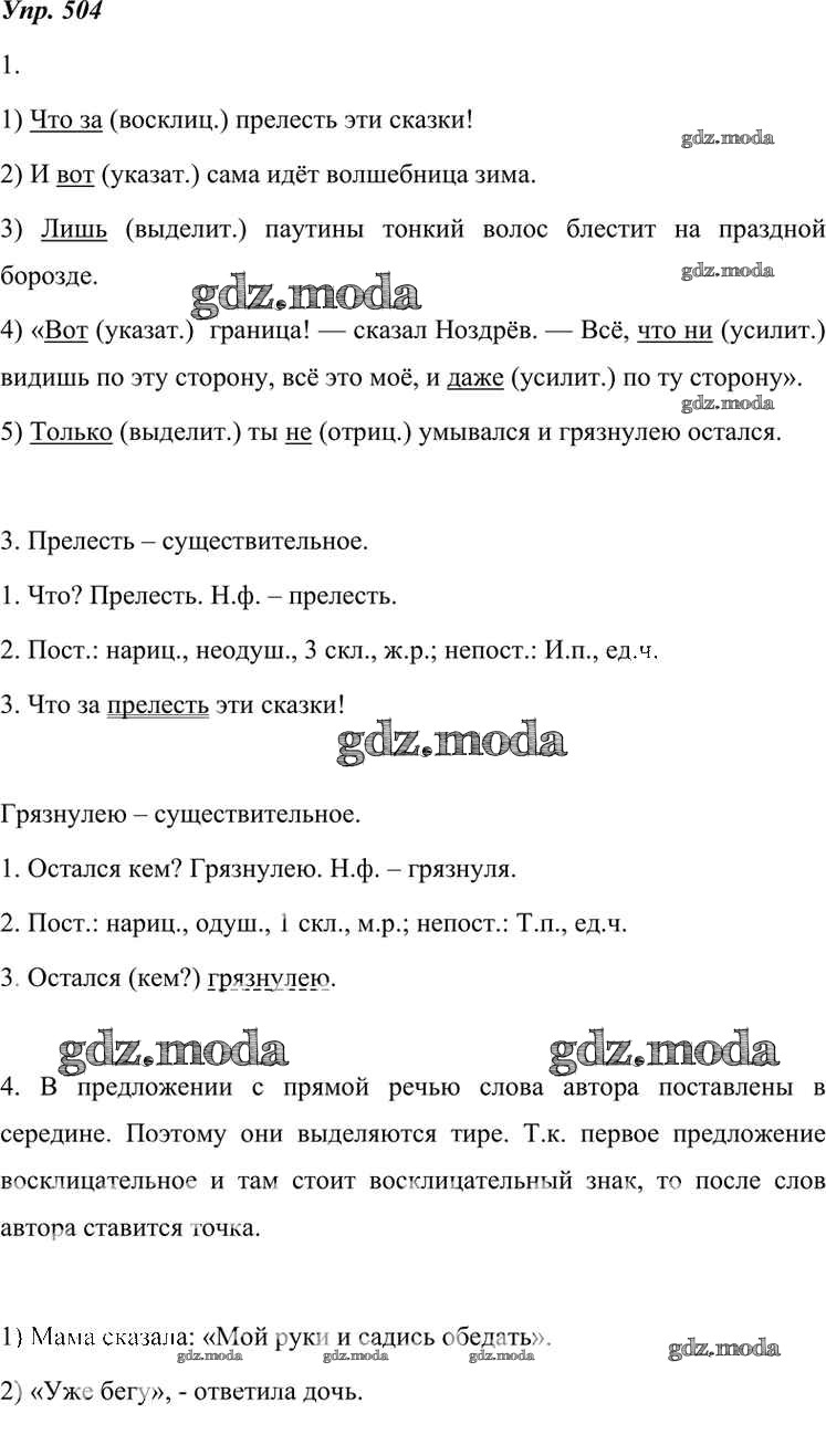 ОТВЕТ на задание № 504 Учебник по Русскому языку 7 класс Разумовская УМК