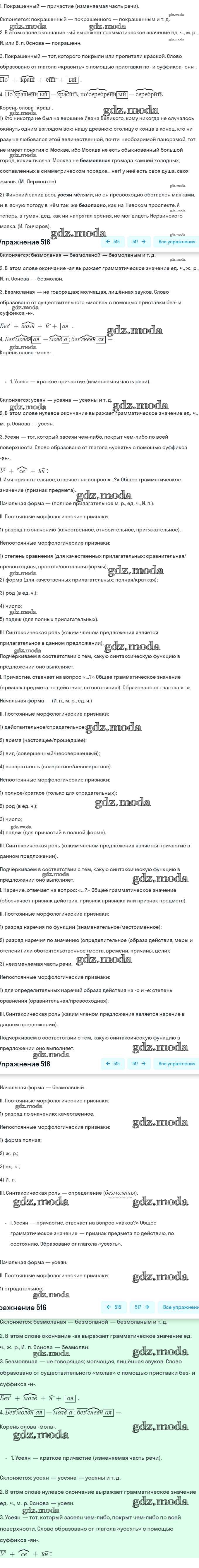 ОТВЕТ на задание № 516 Учебник по Русскому языку 7 класс Разумовская УМК