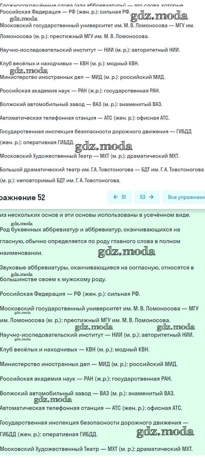 ОТВЕТ на задание № 52 Учебник по Русскому языку 7 класс Разумовская УМК